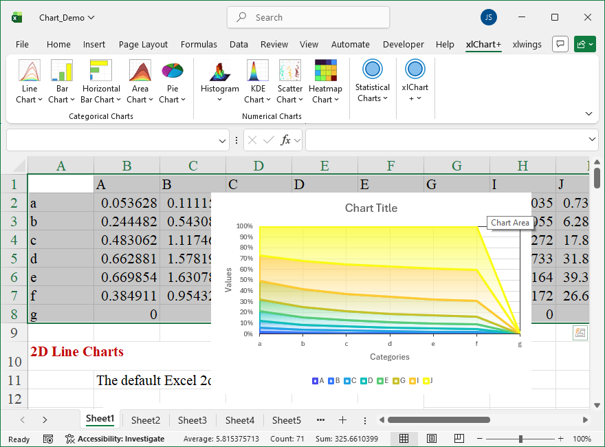 How To Create 2D 100% Percent Stacked Area Chart Using xlChart+ Add-in?