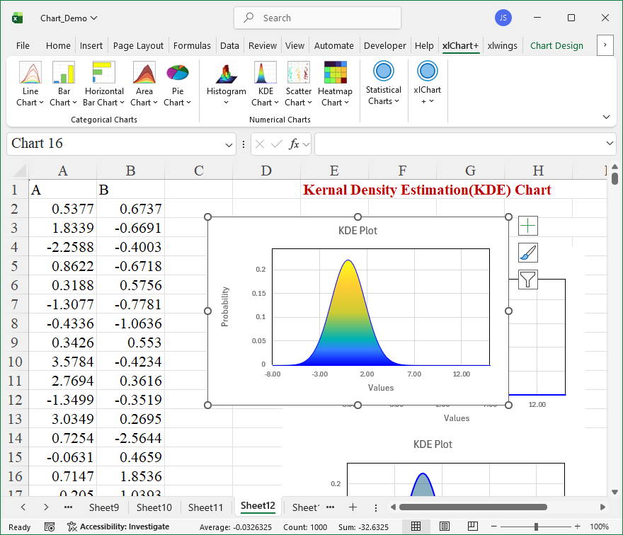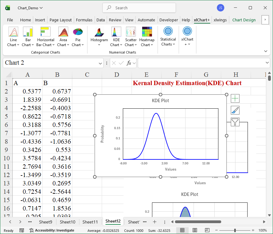 How To Create Univariate KDE Curve Chart Using xlChart+ Add-in?